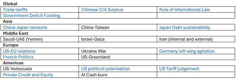 Furthermore, this is also causing the breakdown between neighbouring ally countries with the imposition of selected non-sensical tariffs and geo-political tensions. Below is a list of many geopolitical and macro issues facing multiple countries, two countries or seriously impacting a single country. The world is really in a tough spot.